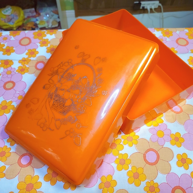 ✼••┈┈••✼••┈┈••✼••┈┈••✼••┈┈••✼ フルーツの入ったカゴとリボン柄のセルロイドのケースです❁ 写真よりポップな色味のオレンジ色をしています お裁縫道具を入れたり、コレクションを入れて宝箱にしたりしてみてください♬ ✩ヒビの入っている箇所があります ✩全体的にスレ・細かいキズがあります 【サイズ】 18.5✕12.5✕6センチ ●ご利用の端末や閲覧環境によっては色味が異なる可能性がございます。 ●寸法には多少の誤差が生じる場合がございます。 ●複数購入された場合、送料は一つ分になります。 ✼••┈┈••✼••┈┈••✼••┈┈••✼••┈┈••✼