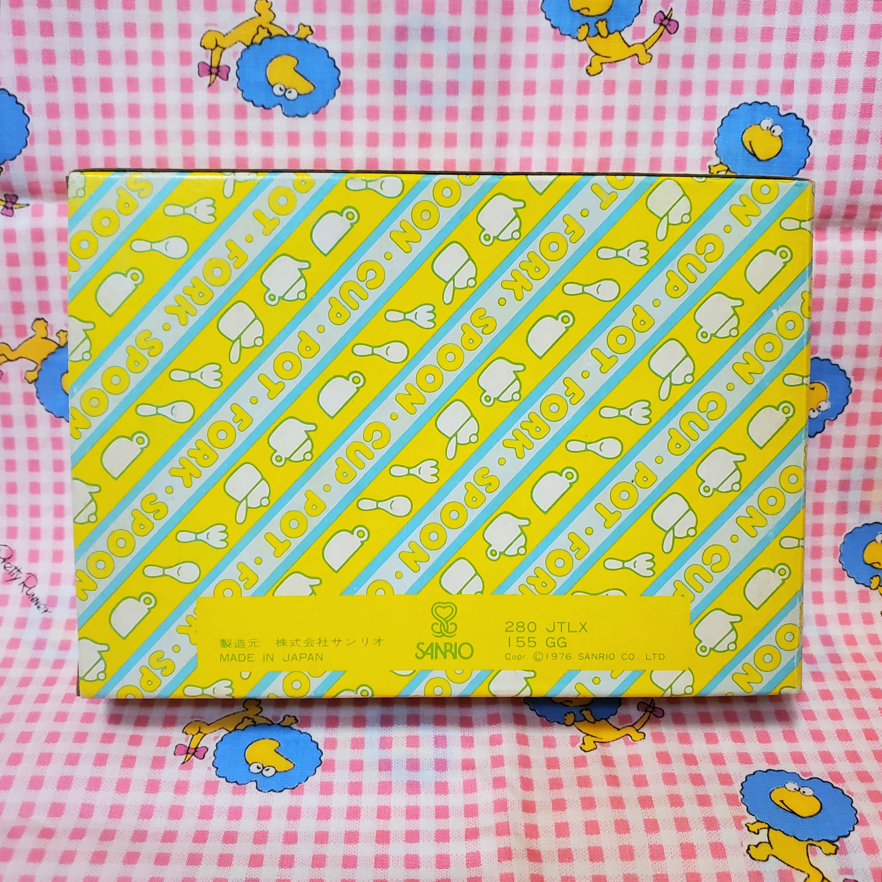 共箱はファンシーなcup、pot、fork、spoonの文字とイラストが全面にプリントされてて、箱も飾りたくなるかわいさ!
