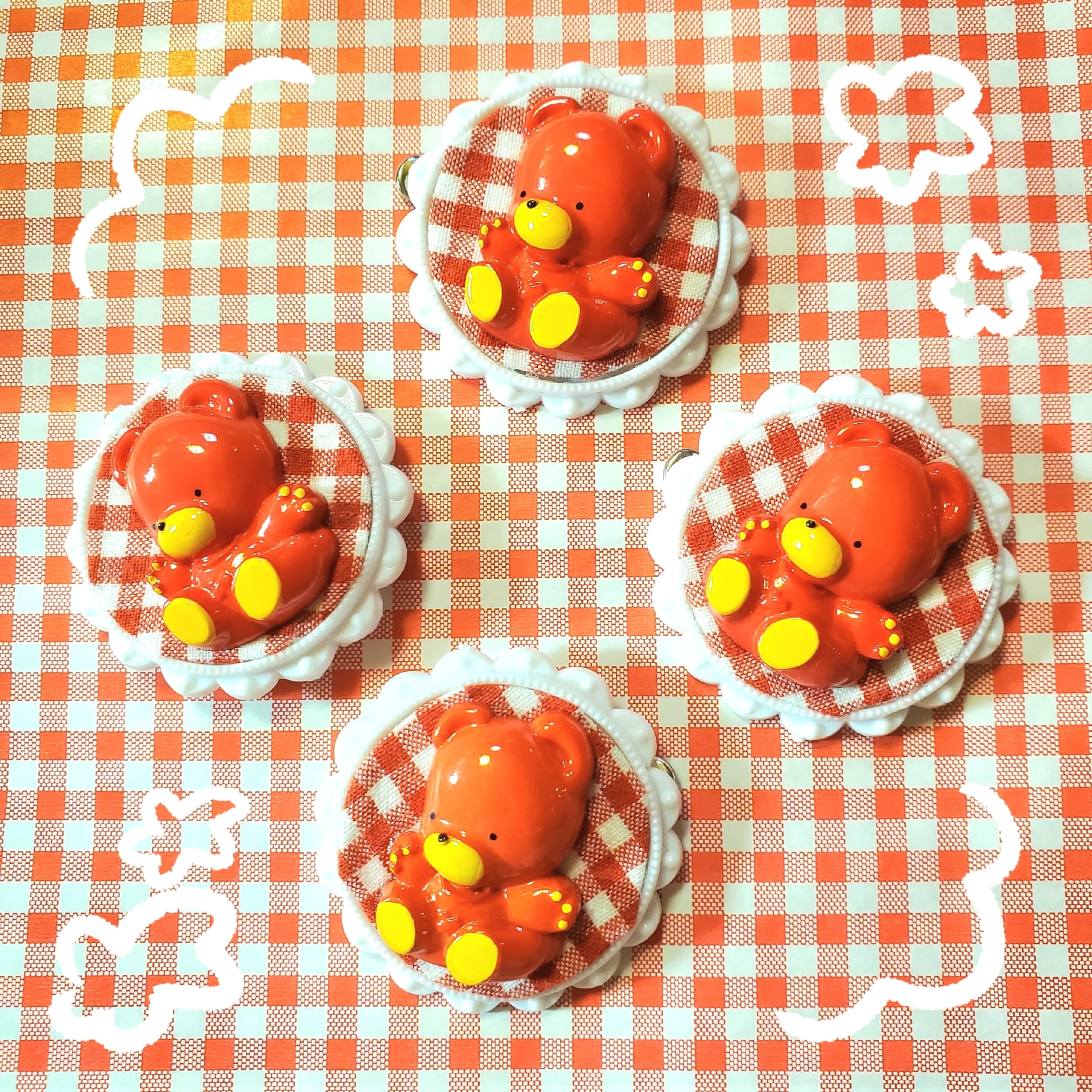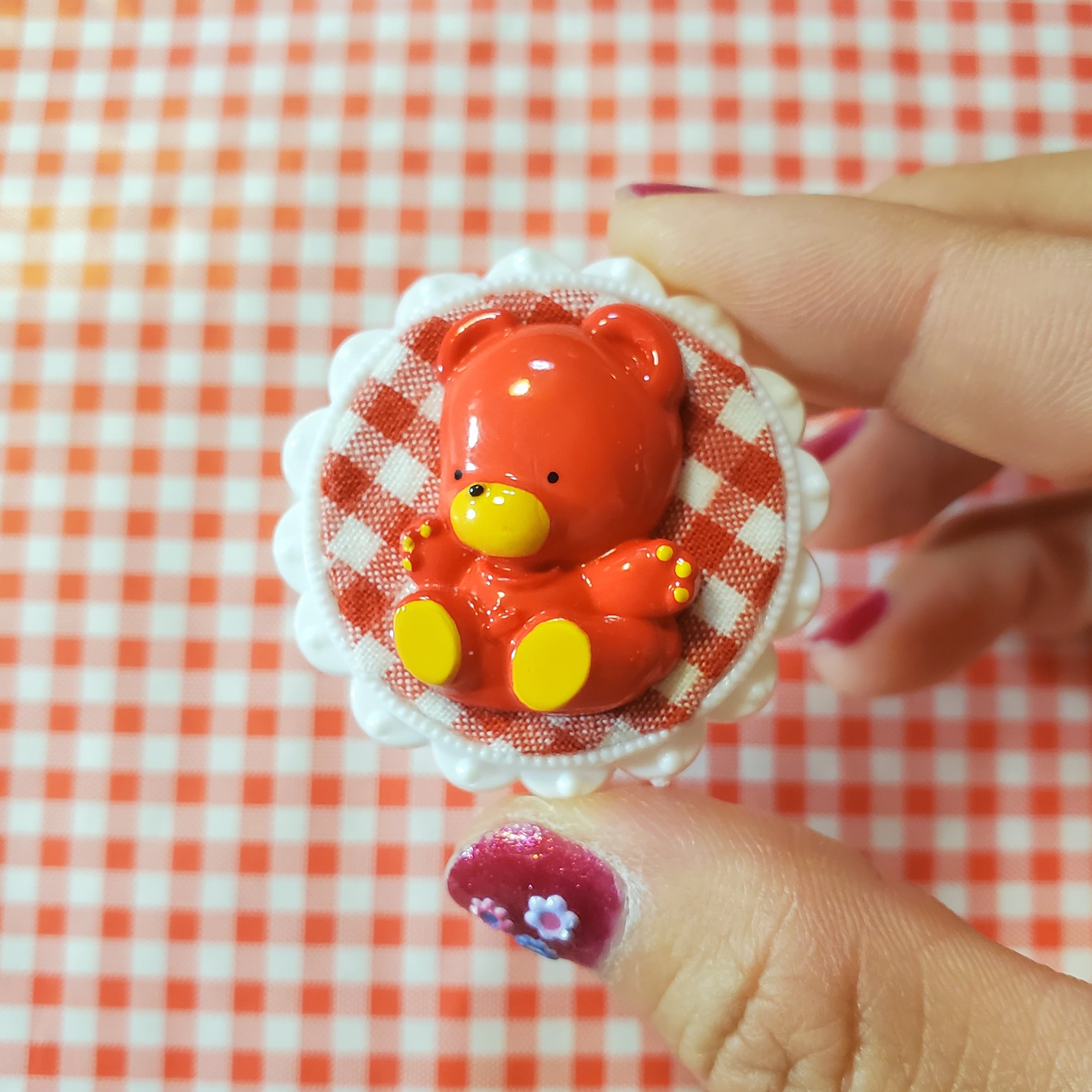 真っ赤なくまちゃんのボタンでブローチをつくりました❁
