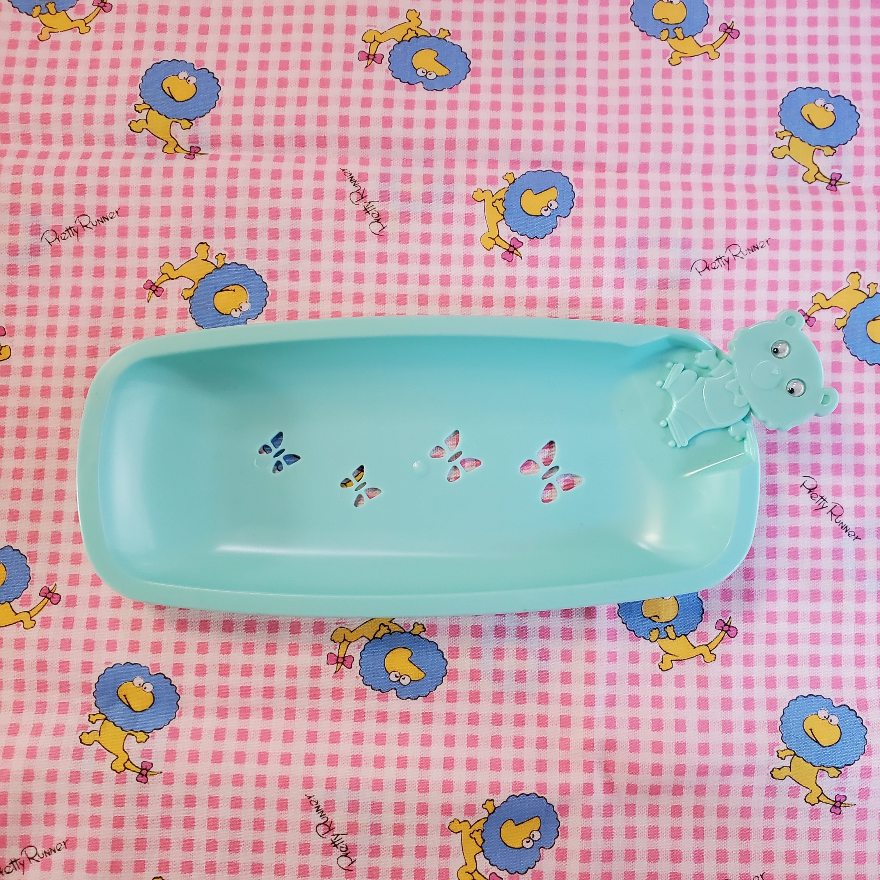 ギョロギョロ目が動くくまがくっついたプラスチック製のトレーです✩