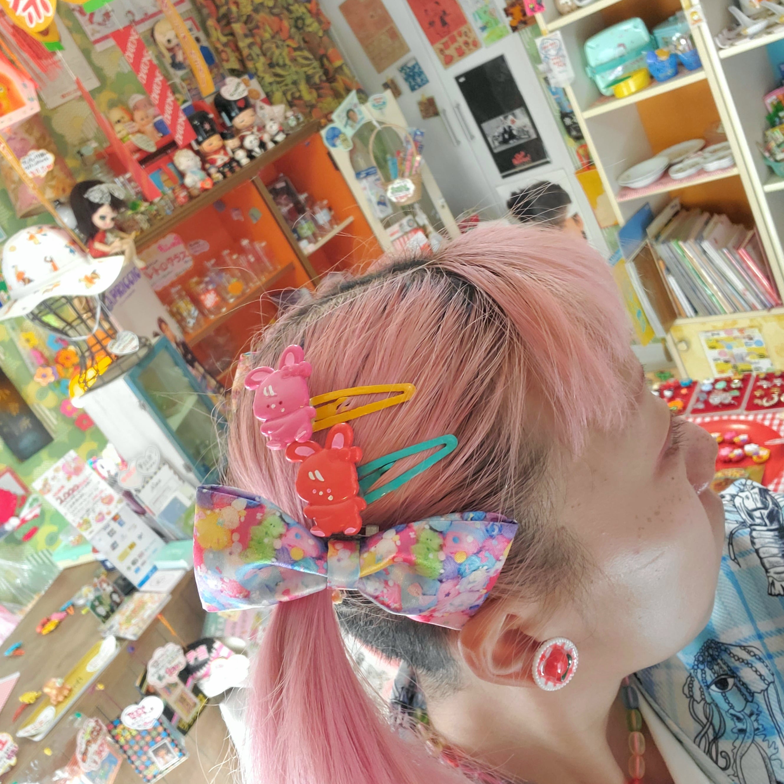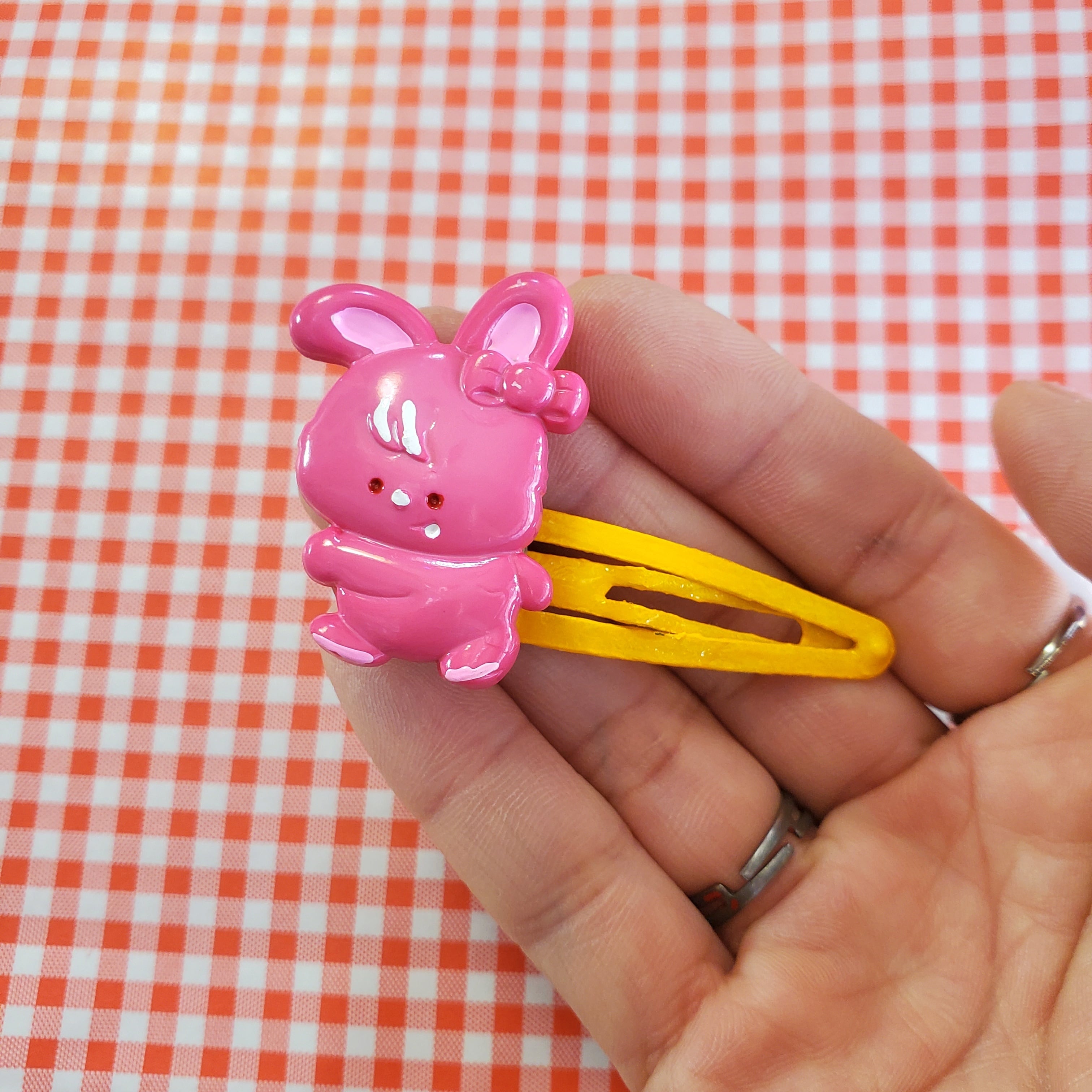 カラフルなうさぎのヘアピンです✩てくてく歩いてるポーズがかわいい~