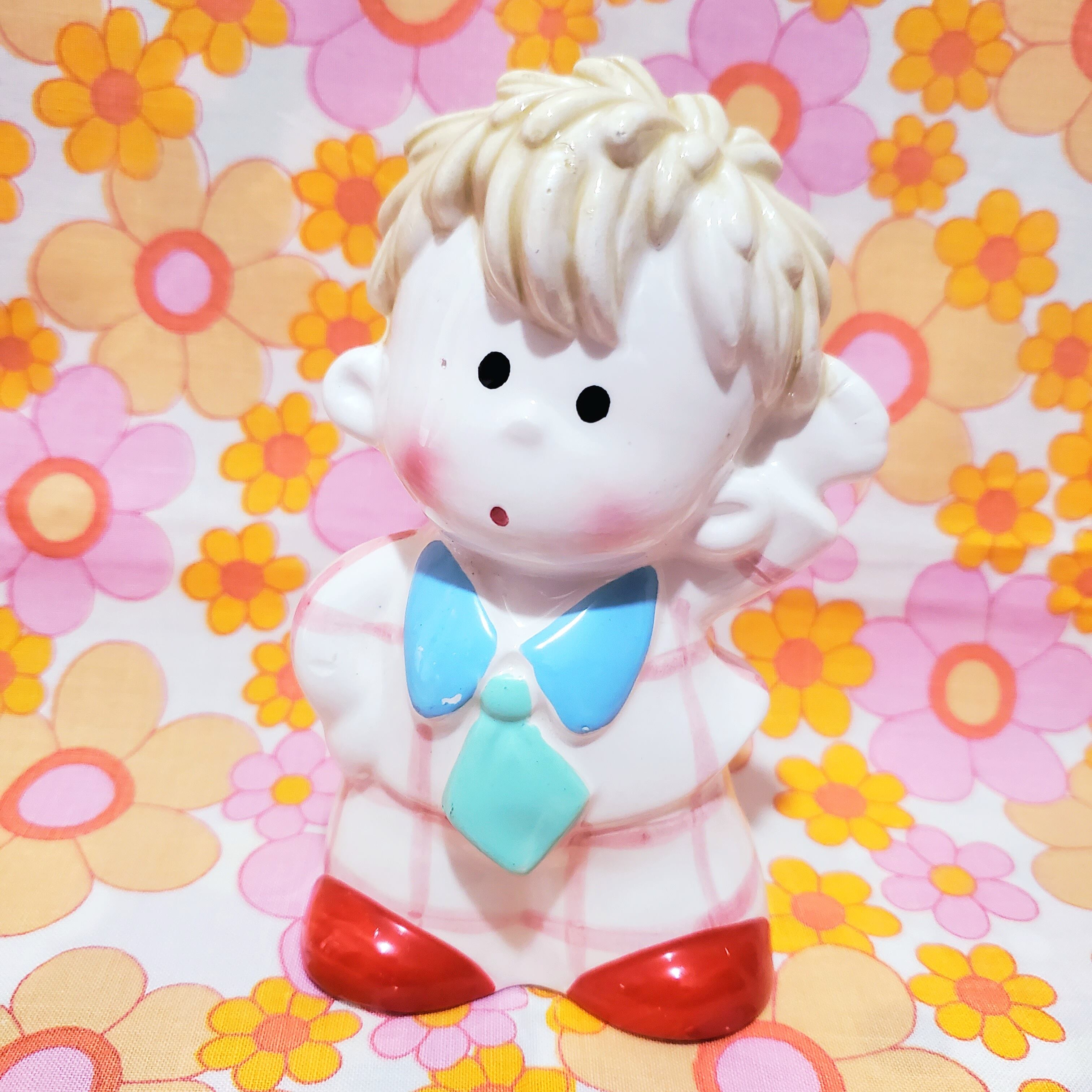 チェッカーズ風のお洋服を着こなした可愛らしい男の子の陶器人形✩